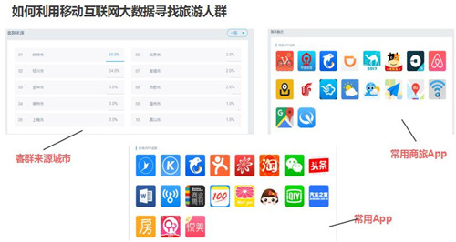 再举一个场景应用,每天中午11点到下午1点,如果通过数云的数据监测发现到这个时间段的人都在用美团点评、百度外卖、饿了么的时候,有没有想过如果你是一家含餐饮的酒店,你要不要连接餐厅,这其实是在解决很多运营上面的问题。