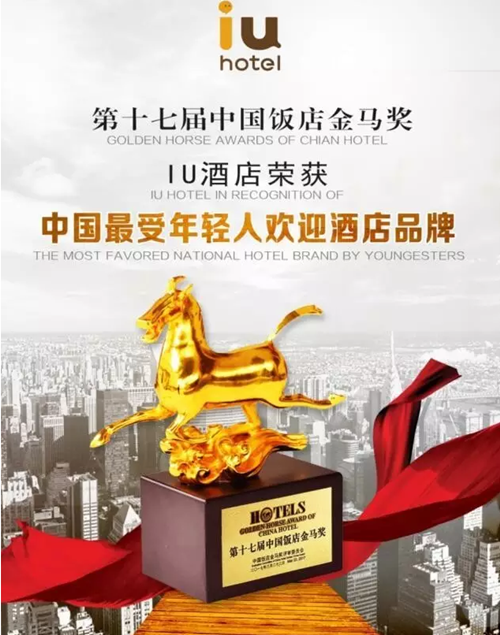 2017年3月22日,在“中国饭店业年度奥斯卡盛会”暨第十七届中国饭店金马奖上,中国“互联网轻精品酒店标杆品牌“IU酒店,凭借其独特的互联网轻精品定位,标准专业的网络化运营服务和无界限互动体验的新型住宿模式,让消费者真正体验酒店线上空间与年轻生活的无缝连接,赢得中国饭店金马奖“中国最受年轻人欢迎酒店”标杆品牌。