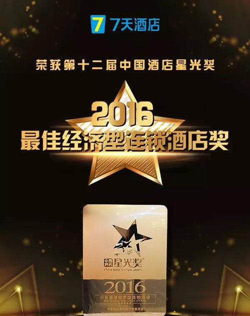 3月31日,第十二届亚洲酒店论坛年会暨中国酒店星光奖颁奖典礼在上海隆重举行,重量级嘉宾和跨界精英云集现场,累积12年丰富行业经验的7天酒店在本次颁奖典礼上荣获“中国最佳经济型连锁酒店”奖。