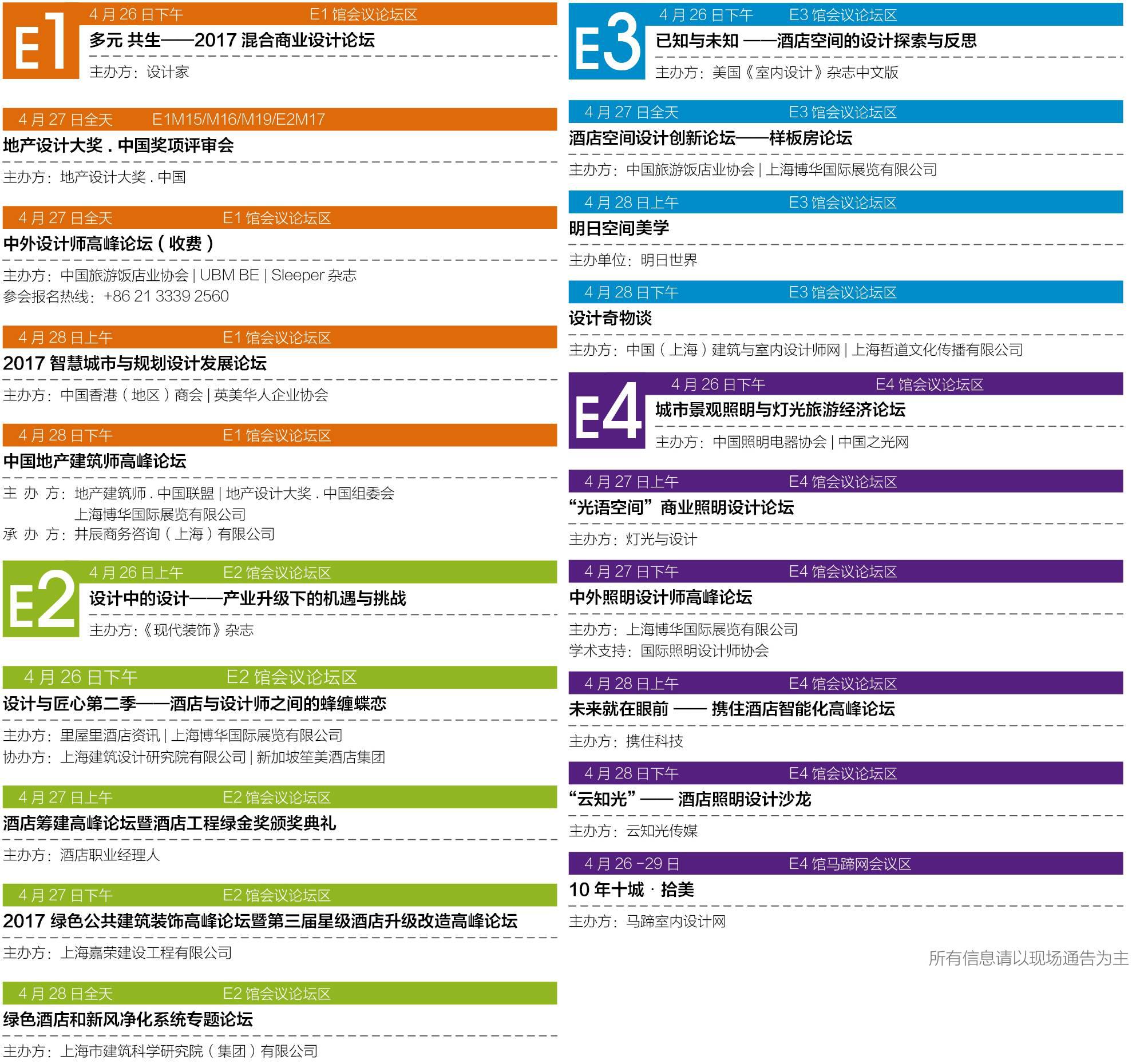 以上所介绍的活动只是酒店展二期—上海国际酒店用品博览会(二期)暨上海酒店工程及商业空间系列展众多活动的冰山一角。展会上将有国内外知名展商将携各自最新展品及数十台精美活动亮相展会,并邀请到各行业知名专家学者为参观者答疑解惑,指点迷津,旨在打造一台集建筑与装饰,工程与设计,空间与陈设,家具与照明,软装与灯饰,清洁与环保,智能与休闲的产品、服务和解决方案于一体的大型超级专业展览会。