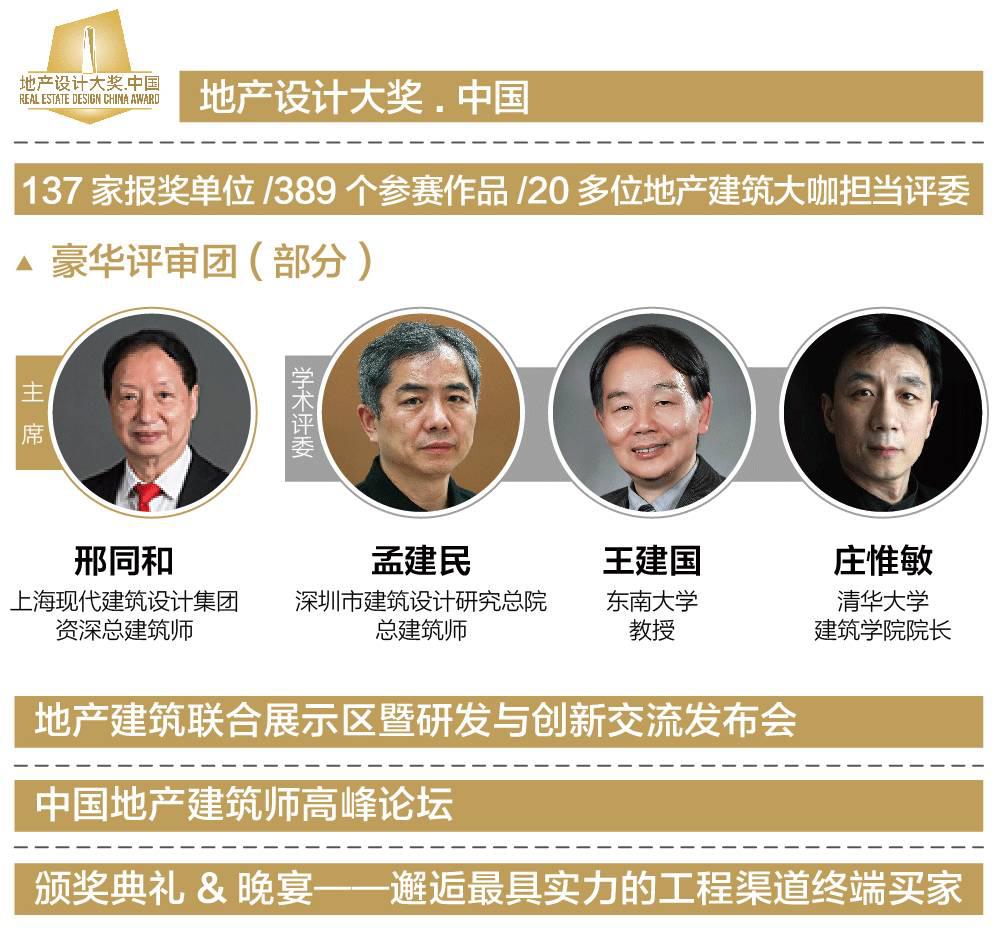 地产建筑节是地产建筑界的盛事,通过奖项评审、颁奖与晚宴、论坛与沙龙、展示与发布等系列活动,召集最具行业领先意识的房地产开发商、设计师、建筑师、酒店管理集团代表共聚一堂,提升地产界的设计力量,帮助地产建筑界转型升级。
