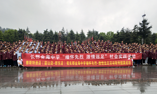 发扬爱国精神、传递正能量,4月25日,雅斯特酒店集团携手长沙长郡金海中学650名学生们到韶山举行“缅怀先烈-激情远足”活动。