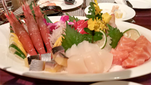 我是个吃货,面对美食,毫无抵抗力。可惜肚子容量有限,不能贪多浪费,只好挑最爱的几样品尝。那肥而不腻的三文鱼、新鲜的大龙虾,再来一片柔嫩的鹅肝、一块牛排,配一杯红酒加一盆蔬菜色沙,就吃得心满意足,眉开眼笑了。