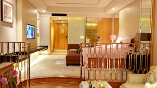 走进大堂,脑海里立马闪过三个字“好气派”。环顾四周,宽敞,顶特挑高,毫无压抑感。办好入住手续,进电梯,发现这空间超出常规,不由加了印象分。心想,不愧为“土豪酒店”,看这设计装修,老板舍得花本钱。