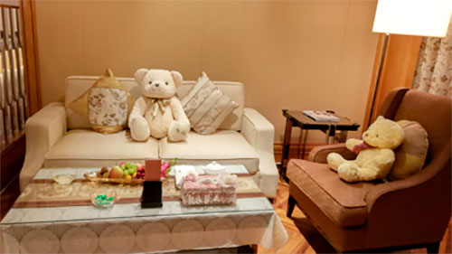 朋友很热情,给我安排了行政房,打开房门,非常意外。见惯了宾馆里那统一的白色,忽见这一屋子的粉,不由引爆了隐藏多年的少女心。目光扫过去,悬挂的粉色珠帘、粉色毛巾、粉色系列床上用品,满眼的暖色调,让人有一种家的温馨。