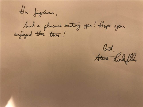 洛克菲勒家族代表对雅斯特董事长兼CEO胡竞选美国之行表示祝福