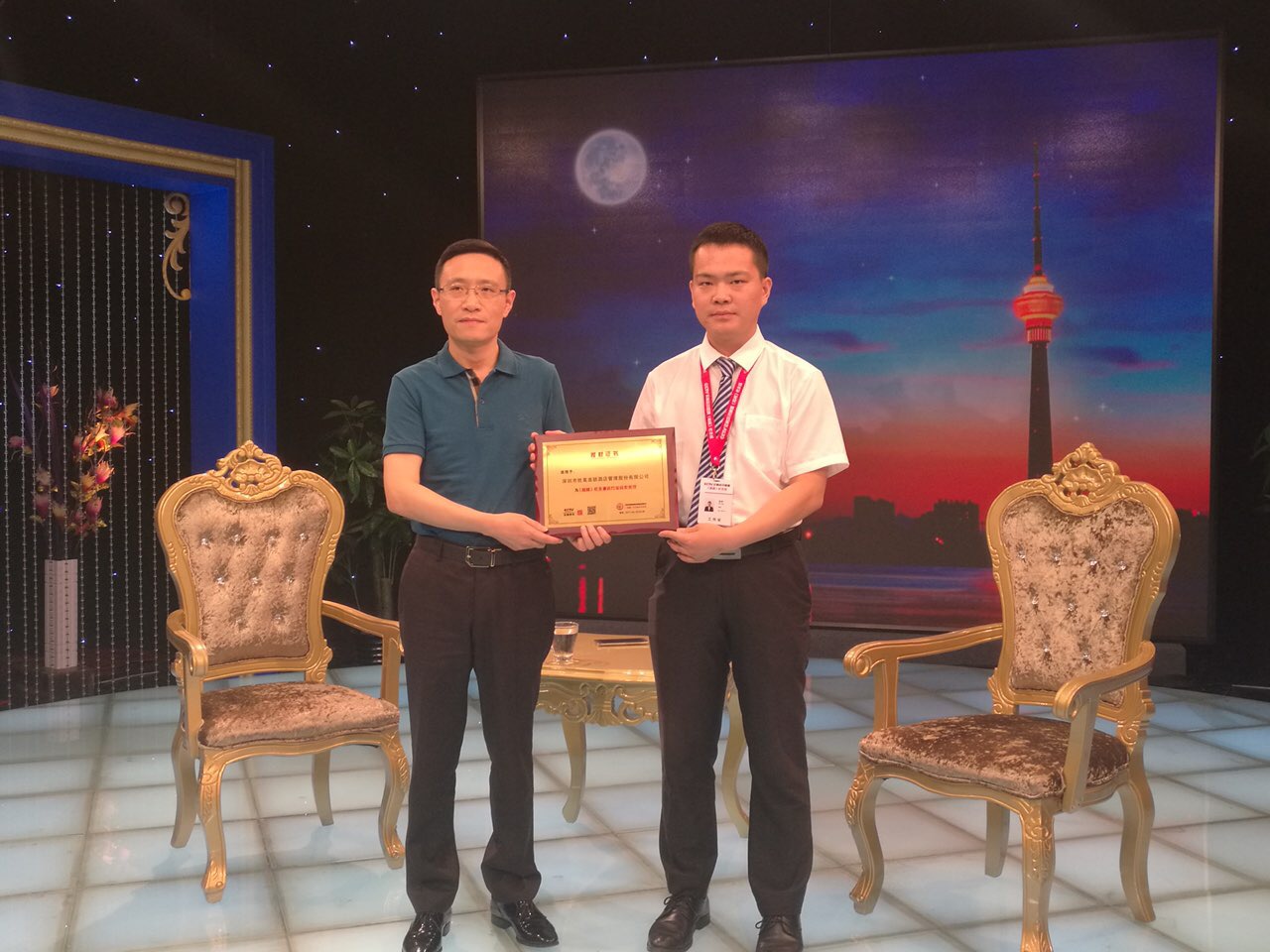 盛宏军接受CCTV证券资讯频道《超越》栏目组授予“合作伙伴”奖牌