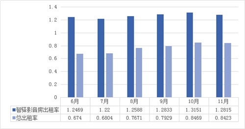 在高增长率的背后,是智驿影音客房为某经济连锁酒店提供的定制化服务所带来的高入住率。从客房平均出租率上我们可以看出,智驿影音客房的入住率远远高出其他普通客房的出租率,比最高的普通房型都高出近30%。由此可见,宾客对酒店影音客房服务的认可。