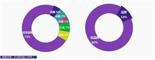 《白皮书》中的数据显示,尽管面临来自经济增长放缓和消费升级的压力,国内酒店市场仍然是以经济型连锁为基础,占据整个市场份额的73%,说明经济型酒店仍然是国民的主流选择。