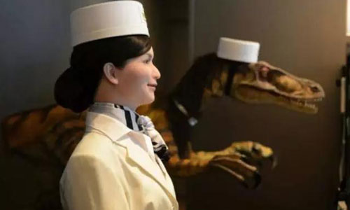 而以“世界第一机器人酒店”闻名的日本Henn-na 酒店则是在酒店所有服务环节中都启用机器人。据悉,将于8月1日在爱知县开业的海贼王主题游乐园店将配备更多机器人,100间的客房规模仅有7名员工负责机器人无法办理的事务; 酒店前台是恐龙“妈妈”和“宝宝”负责办理入住,每个房间内各有一台声控机器人完成简单指令。而拟人化的机器人Yumeko则是一个能说英语的行李员。除了充当前台办理入住之外,机器人还可以充当引导员、搬运工或百事通等角色。