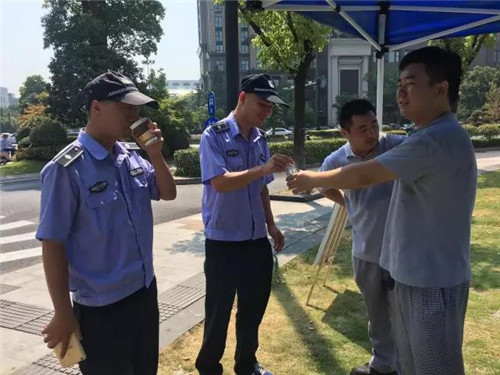 为在高温作业的劳动者提供饮用水和休息区域,让杭城在这个炎热的夏天里,出现了不少沁人心脾的感人场面。