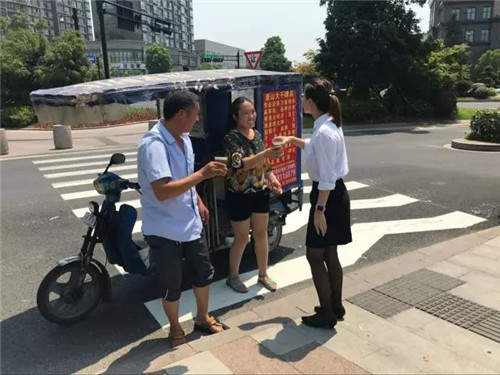 这个爱心驿站同时还兼备了咨询功能,很多外来务工人员对本地不熟悉,常来询问地铁口、医院、超市所在地,雷迪森铂丽的志愿者热心为路人之路,并通过手机为路人导航定位。路人表示:“萧山好,萧山好,不但环境美,人也热心。没想到这大热天你们还免费送冰绿豆汤、矿泉水,感谢!感谢!”