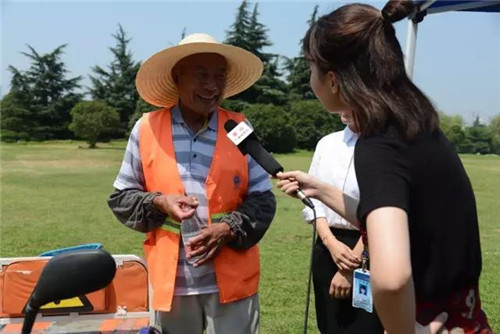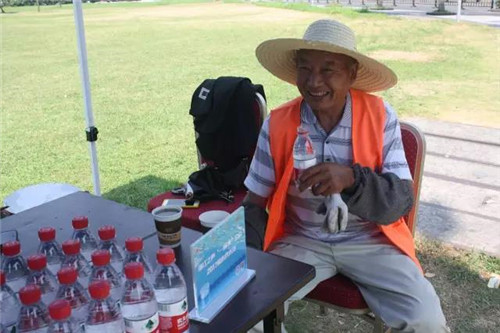 70多岁的许爷爷,他是一名环卫工作者,早上6点不到便要开始自己一天的工作,许爷爷告诉我们:“自己带的一壶水往往不够喝,能在这里歇歇脚,喝一杯冰镇绿豆汤真的很舒服。”