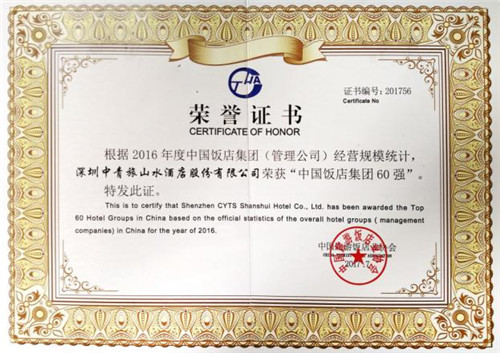 7月19日,第十四届中国饭店集团化发展论坛顺利开幕,中青旅山水酒店荣获“2016年度中国饭店集团60强”称号。