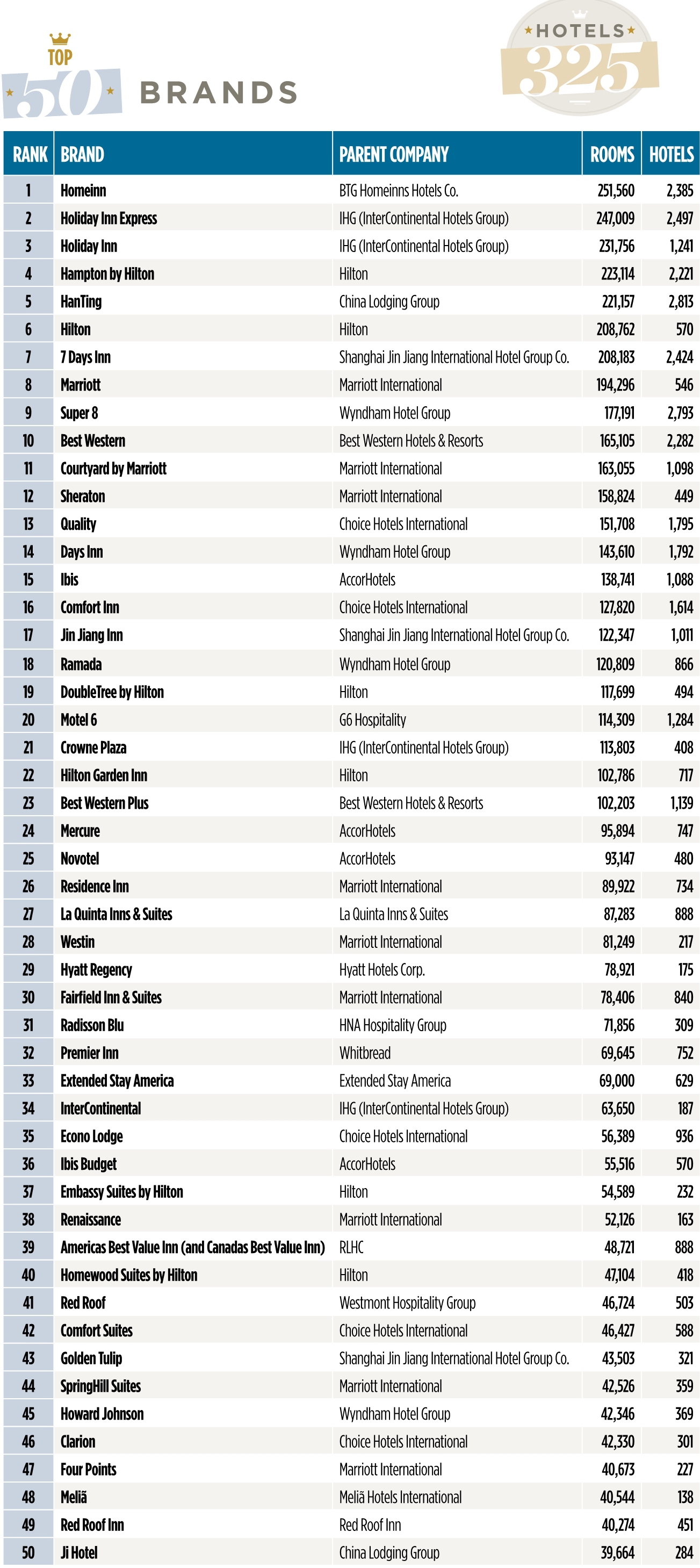 近日,酒店业国际权威杂志《HOTELS》发布了以客房规模排名的2016年度世界酒店300强名单。上榜300强的中国酒店集团有35家,前十名的中国酒店集团有3家。