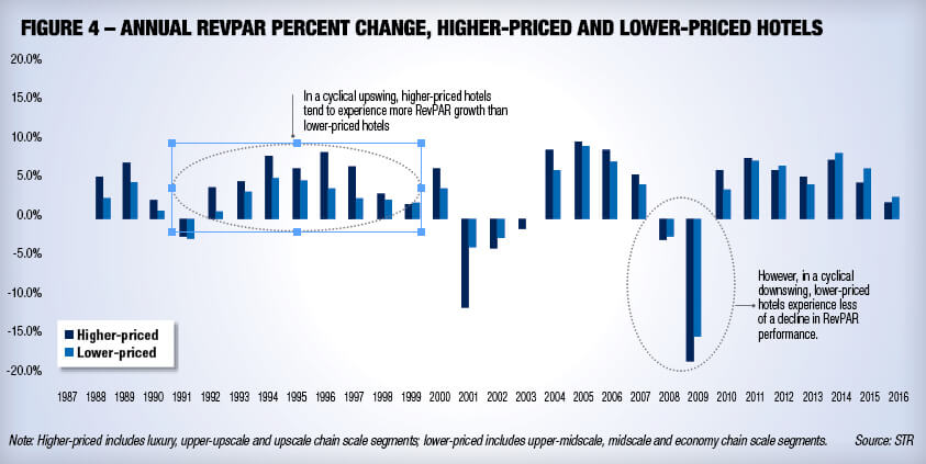 图4:低价酒店RevPAR较为稳定,从近几年开始高于高价酒店(点击查看大图)