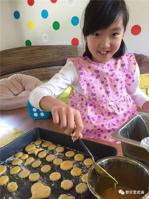 只记得第一次见我们的是一群来自上海的小朋友,他们来这玩得可开心了,一会儿系上围裙,戴上高帽,在那做小饼干、巧克力,要是能给我一个就好了。