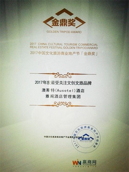 澳斯特君有幸受邀参加此次活动,并荣获2017年度最受关注文创文旅品牌的称号。澳斯特,敏锐把握投资市场与消费者需求的变化,为酒店投资人及消费者量身打造高性价比的国际中档酒店。