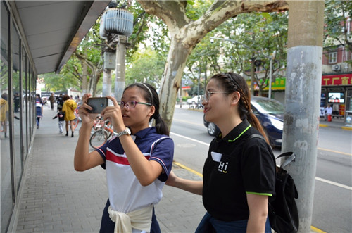 在镜头发现城市之美的环节中,同学们跟随志愿者熟悉学校周围环境和社区,利用手机、照相机、摄影机等设备进行拍摄,用镜头记录他们发现的美好事物。拍摄过程中,同学们不断和志愿者们交流自己对社区的理解。在长达4个小时的拍摄时间里,孩子们不仅没有表现出一丝疲劳,反而都呈现出一种积极乐观的态度。他们幸福的笑脸打动了身边每个人的心。