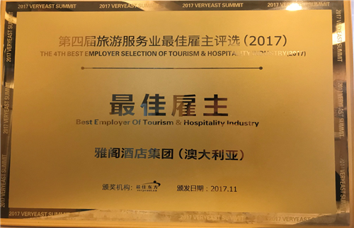 雅阁酒店集团荣膺2017旅游服务业最佳雇主