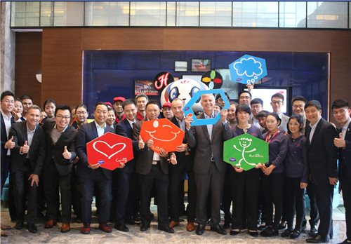 图:希尔顿集团全球总裁一行与希尔顿欢朋(中国)代表及酒店员工合影