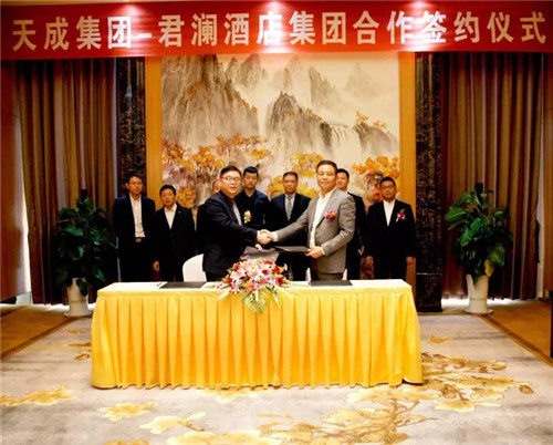 2017年11月11日下午,君澜酒店集团副总裁刘军先生和天成集团董事长曹桂良先生分别代表公司签署了合作协议,此次签约将位于江苏省徐州市睢宁县的睢宁天成世贸君澜大酒店项目正式交于君澜酒店集团管理。