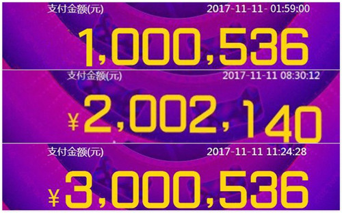 此次恒大酒店“双十一”产品的销售闸口于11月11日0点正式开放。这一天,在广州恒大中心的恒大酒店集团总部内,可以看到显示屏上的实时数据频繁跳动——凌晨1点59分,恒大酒店集团迎来了“双11”成交额的首个100万;8点30分,成交额便已突破了200万;到了上午11点24分,成交额又即打出了300万的小高潮……直到11月11日的23点59分59秒,屏幕上的数字一锤定音——恒大酒店集团2017年“双11”的线上总成交额为4,564,820元,创下了历史新高。