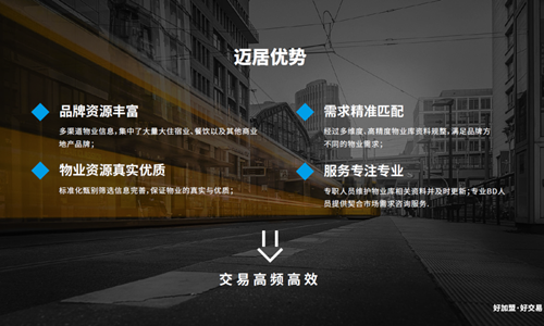 迈居将以自身的强资源整合力,不仅为物业方和品牌方增效增值;同时还将规范产权交易市场,形成良性机制,并推动产权交易行业健康发展。
