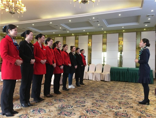 以下为怡家酒店特邀东星航空资深礼仪老师对礼仪队员进行专业化礼仪培训: