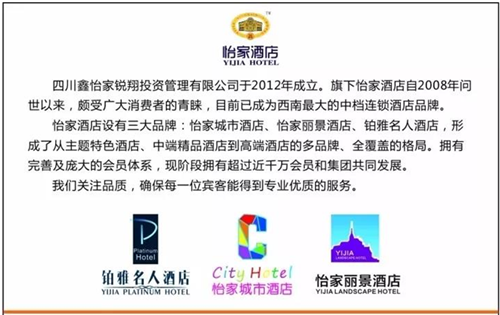从2008年问世以来,怡家酒店以服务著称,不断得到圈内同行及客户的高度赞扬及好评。目前已成为西南地区最大的中档连锁酒店品牌,全国有限中档服务酒店排名top16(数据来源迈点网)。