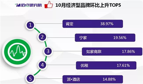 据《中国住宿酒店品牌发展报告》最新发布的10月份数据显示:经济型酒店品牌位次与指数上升TOP5排行之中,派酒店均强势登榜分列第三和第五。