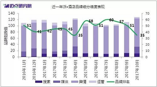 在11月21号迈点研究院最新发布的《中国住宿业酒店品牌发展报告》10月份数据显示,在经济型酒店品牌环比指数以及位次上升TOP5排行之中,派酒店均强势登榜分列第三和第五,品牌指数为128.08,较上月环比上升14.88%;排名第35,与上月相比进步16个位次,成为业界重点关注的品牌。从品牌细分维度数据看,派酒店的潜在消费群体集中于广东地区,搜索指数保持着稳定水平。而在舆情指数方面,目前派品牌的平均好评率基本在90%以上。数据表明,派酒店备受消费者、行业及媒体关注,是派品牌有效解决单体酒店困境和提升消费者体验受市场认可的有力证明。