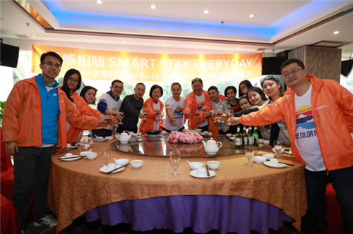 这是一场没有计时,没有冠军的跑步比赛。小白洋们在这里抛开生活和工作的烦恼,尽情体会到此次活动带给我们的“健康 快乐 大众参与”,十分SMART的彩跑理念。这是因为The Color Run彩色跑的跑步理念与我们澳斯特想要传达给大家的品牌理念不谋而合,我们希望每一个住在澳斯特的客人,每一个澳斯特的工作人员,都能感受到灵感相随,Smart Stay Everyday!