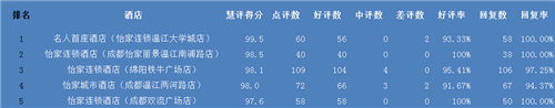 图为:怡家酒店本月慧评前五位门店的慧评数据