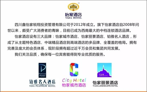 怡家酒店一直致力于服务,引以为傲的当属集团自创的怡家壹亲近关怀服务体系.怡家酒店的怡家壹亲近关怀服务体系,根据怡家酒店三个“做好”总体要求,配合公司发展战略,充分做好客户满意度,结合公司实际情况,一切围绕怡家酒店“真诚付出做好服务”的总纲领要求,对分店各岗位、服务点以及各工作板块的服务行为进行了全方位的优化和提升。怡家壹亲近关怀服务体系主要包含:连锁化标准亲近关怀、惊喜化亲近关怀、关怀行为标准、责任及审核四个部分组成。作为连锁化标准,每个岗位必须要主动对每一位客人实施的关怀行为。除了亲近关怀外,员工通过与客人的交流、观察、以及对客人的了解,根据客人的潜在需求,向客人实施纯行为类的关怀举措,为客人提供超出预期的服务,制造温馨的惊喜化亲近关怀。