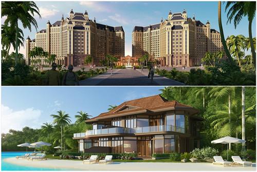 海花岛欧堡酒店(上)与七星海岛别墅酒店近景