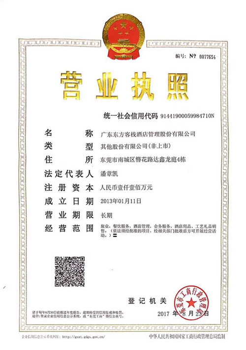 东方客栈已于日前取得“股份有限公司”营业执照!这标志着东方客栈在民宿客栈细分业内首家率先完成了股份制改革。
