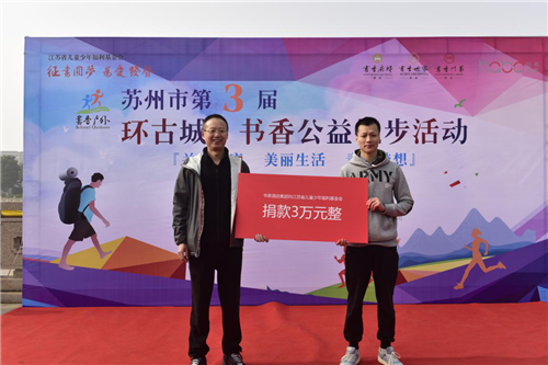 本次环古城书香公益徒步活动由苏州创元投资发展(集团)有限公司、苏州文旅集团、苏州城市建设投资发展有限责任公司、苏州水务集团有限公司、书香酒店投资管理集团有限公司以及苏州卓越高校校友联盟共同发起,活动还得到了社会各界的支持和响应。与前两年的活动不同的是,这次以“关爱健康 美丽生活 青春梦想”为主题的公益徒步活动还与江苏省儿童少年福利基金会携手,打出了“征书圆梦 为爱发声”的口号。据了解,江苏省儿童少年福利基金会是我省最早成立的、以儿童少年为服务对象的公募基金会。基金会以服务儿童,造福儿童为办会宗旨。、
