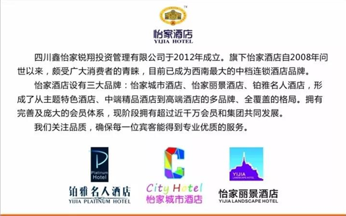 怡家酒店集团作为西南地区最大的中档连锁酒店品牌之一,最近捷报频频,这与集团不断追求创新发展和享有怡家特色的 “怡家壹”亲近关怀服务体系是分不开的,只有把客户的满意度及体验放在首位,通过真诚的付出、用心的服务,传递给顾客家的感觉,才能成为一座城市的名片,才能获得如此殊荣。