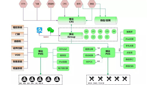 通过绿云iHotel酒店信息化平台的电商业务平台,绿云打造了一体化的基于微信、官网的线上营销平台。以潍坊滨海旅游度假区为例,将度假区内数家酒店、美食坊、超市、沙滩景区、旅行社、城市艺术中心、有机蔬菜基地与微信线上营销平台对接,在实现微信预订单实时传输到集团PMS并自动确认的同时,更将“一卡通”与微信绑定,实现会员的电子化管理。一体化的微信营销平台也为产品创新和多元营销提供了技术支撑,可以将酒店客房匹配诸如KTV、书城、美食坊的电子券,在刺激二次消费的基础上让游客享受流畅的业务体验。云POS、扫码点菜等功能,解决了美食坊、快餐店等客人高频流动时的工作效率,对于综合度假区旺季的承载力而言,具有重要意义。