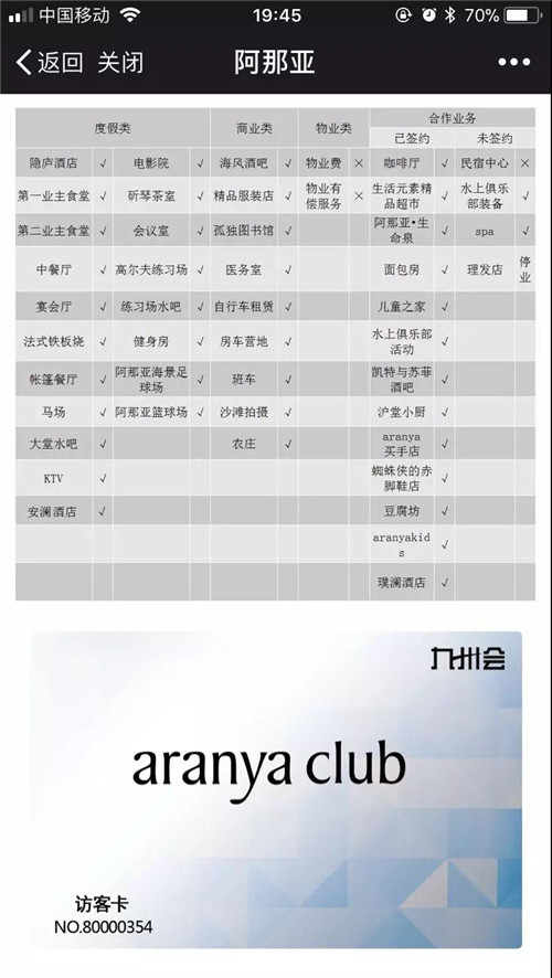 以阿那亚黄金海岸旅游综合体项目为例,其包含酒店、马会、酒吧、便利店、图书馆、业主食堂、开心农场、小礼堂等等不同业态营业资源。基于iHotel酒店信息化平台互联互通和资源整合而构建的IT系统,游客和社区业主,只需在进入社区时领取“一卡通”卡片,即可在所有消费场所进行消费,真正享受黄金海岸“乌托邦”生活,体验阿那亚倡导的“人生可以更美”的感受。