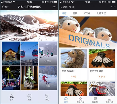 绿云为松花湖个性定制的官网和微信可直连iHotel平台,订单实时传输、自动确认,高效便捷。游客可在微信端预订酒店、购买不同类型的雪票(雪季卡:全季卡、平日季卡及儿童卡;雪票:夜场、平日、周末、节假日雪票)、购买雪具&纪念品、冬令营课程,更可通过系统对接的第三方平台预约教练、私课等。同时,游客在线购买雪票后,可直接在雪具大厅前台或自助机上取卡,方便快捷。游客所有的消费将产相应积分,积分可用于商城消费。绿云同万科一起,致力于为更多游客送去一站式服务的舒心体验。