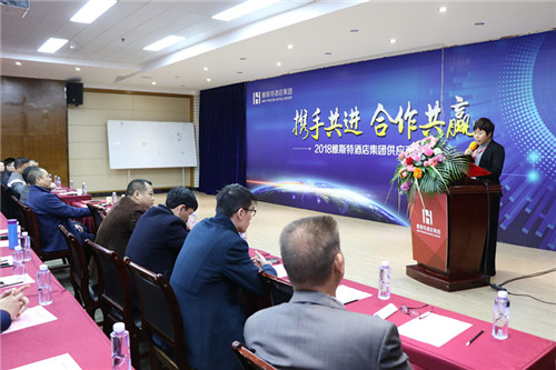 大会上,集团供应链事业部CEO程莉萍女士发表重要讲话:“我公司秉承‘携手并进,筑梦远航,互惠互利,合作共赢’的经营理念,注重产品研发和迭代升级,不断推出新品牌和新产品,在酒店行业市场取得了良好的市场业绩。我相信,与雅斯特酒店集团战略合作不仅能给各位带来可观的经济效益,更能帮各位带来各自品牌的知名度与美誉度,提升各位在整个行业中的地位与竞争力。”并针对回顾一年来双方的合作,提出了三点问题:“质量问题、交货期问题、采购管理问题。”