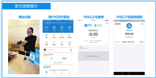 据绿云服务互联部经理黄晓峰介绍,开通芝麻信用免押住功能后,无论通过何种渠道(Walk-In、OTA、协议客、会议客等)入住的客人到达酒店前台办理Check-in时,只需要向酒店出示支付宝付款码(首次使用时需经客人确认同意使用芝麻信用免押住),酒店在PMS收款方式中选择支付宝预授权并扫描付款码即可办理入住。Check-out时,酒店通过PMS操作账务并按照实际消费扣款。免押住在解决了繁琐的酒店前台押金处理业务的同时给客人带来了更便捷的服务体验。