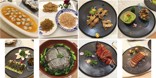 大部分菜肴都是在《舌尖上的中国3》中出过镜的。尤以云林鹅、茄鲞、金齑玉鲙、一虾三吃为最,吃肉之前先喝汤,鹅汤鲜美,异香扑鼻,鹅肉肥嫩,酥烂脱骨;茄鲞就是《红楼梦》中刘姥姥在大观园里吃到的变了味的茄子;一虾三吃,将虾松拌在虾仁中的创新吃法才能将这道菜的精华吃出来。除此之外,大厨们新研制的书香酱鸭、火腿甲鱼等一改往日的众人对大鱼大肉肥腻的印象,入口丝毫不觉油腻,反而更添清香之气,是一道道的养生佳品。