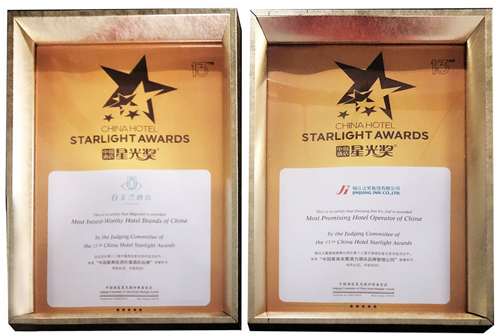图:锦江之星旅馆有限公司携白玉兰酒店斩获两项大奖