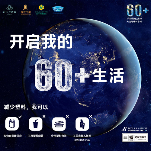 2018年是“地球一小时”进入中国10周年,也是锦江之星旅馆有限公司(以下简称“锦江之星公司”)连续第10年参与这项全球规模最大,参与人数最多的环保行动。3月24日20:30,分布全国的千余家锦江之星公司旗下品牌酒店同时关闭酒店外墙泛光灯照明,积极开展“地球一小时”熄灯活动,号召大家从“熄灯”这样一个简单的动作开始,开启我的60+生活!