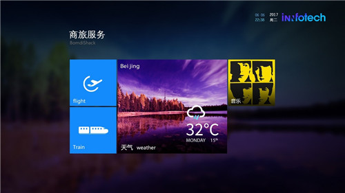 对一家酒店而言,舒适度和便捷度是吸引住客的重要因素,智驿智能生态酒店系统能够帮助住客更便捷的完成一系列的操作。住客可通过酒店电视查询天气资讯、出行车次等商旅信息,提前做好出行准备。