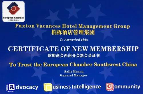欧盟商会对2017年新入会员进行了颁奖。柏栎酒店管理集团作为商会新成员以及2017年的杰出表现受到了表彰。