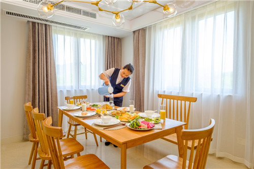 欢墅品牌为共享农庄提供标准化运营,庄主可获取分成收益,同时享受欢墅独有的全国交换入住权益。欢墅品牌独创的“别墅管家”管理模式,严格遵守“管家七步曲”,从“确认订单”“整备别墅”到最后“欢送宾客”通过人员服务七步系列的流程化输出,完成标准化流程,为入住共享农庄的客人提供全方位的贴心服务。